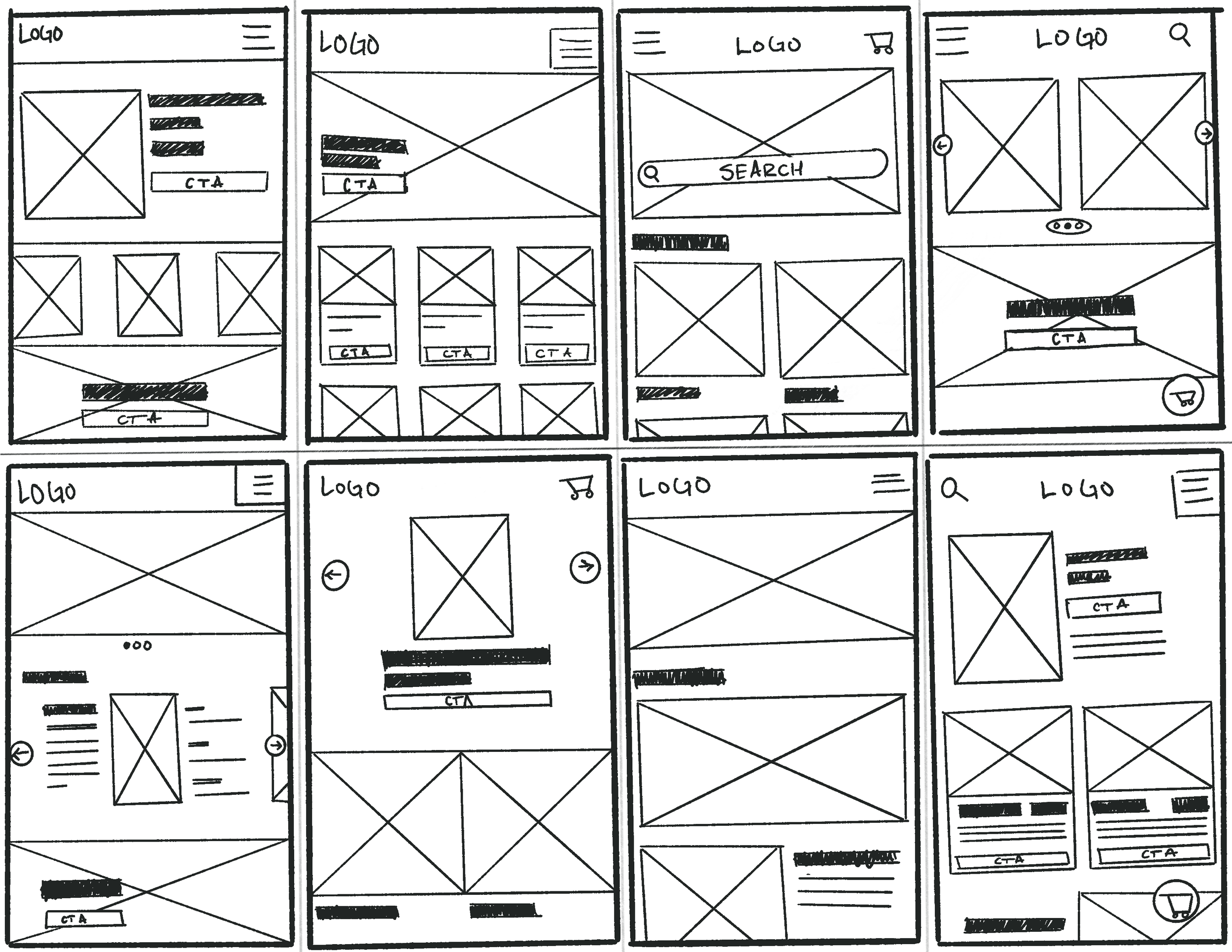 The user flow diagram was then translated into a series of low-fidelity wireframes. These mockups were created to quickly visualize the layout, navigation, and key interactions without getting distracted by visual design elements like color and typography. The focus at this stage was on the functional and structural aspects of the website.