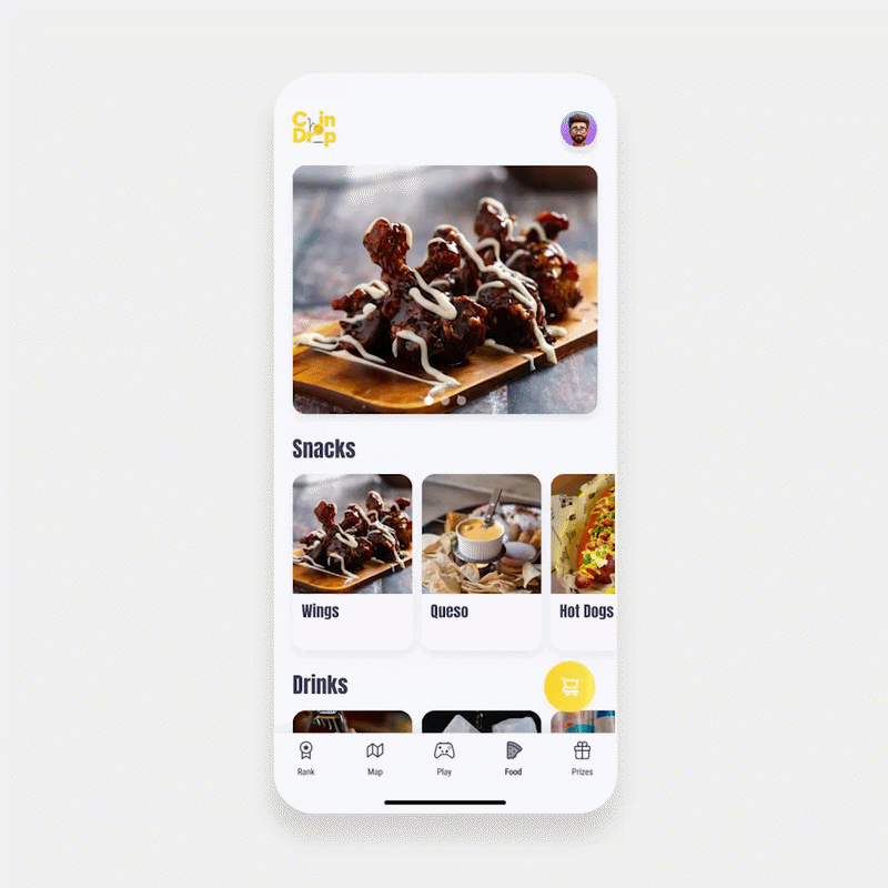 Researching the environment informed our design decisions. So, we designed large bottom sheet navigation and large touch targets to accommodate one-handed usage with a drink or a prize.